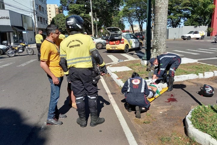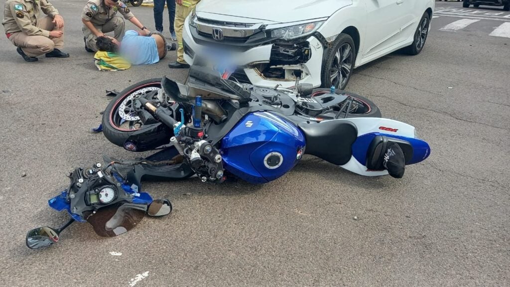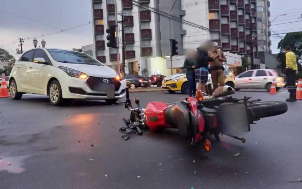 AUTO X MOTO 18/10/2022 às 16:42 Motociclista sofre fratura na perna após colisão no centro de Umuarama