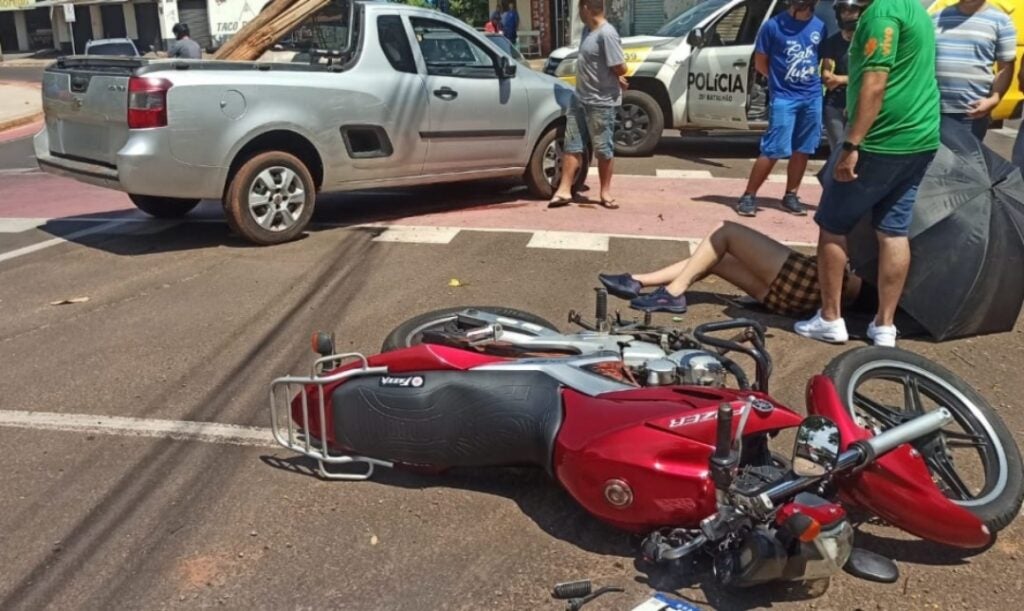 AUTO X MOTO 02/12/2022 às 18:10 Motociclista fica ferida após colisão contra picape na Praça 7 de Setembro