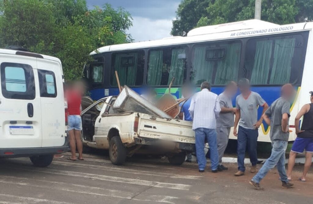 AUTO X ÔNIBUS 12/12/2022 às 21:40 Pessoa fica ferida com gravidade após acidente entre picape e ônibus em Tuneiras do Oeste