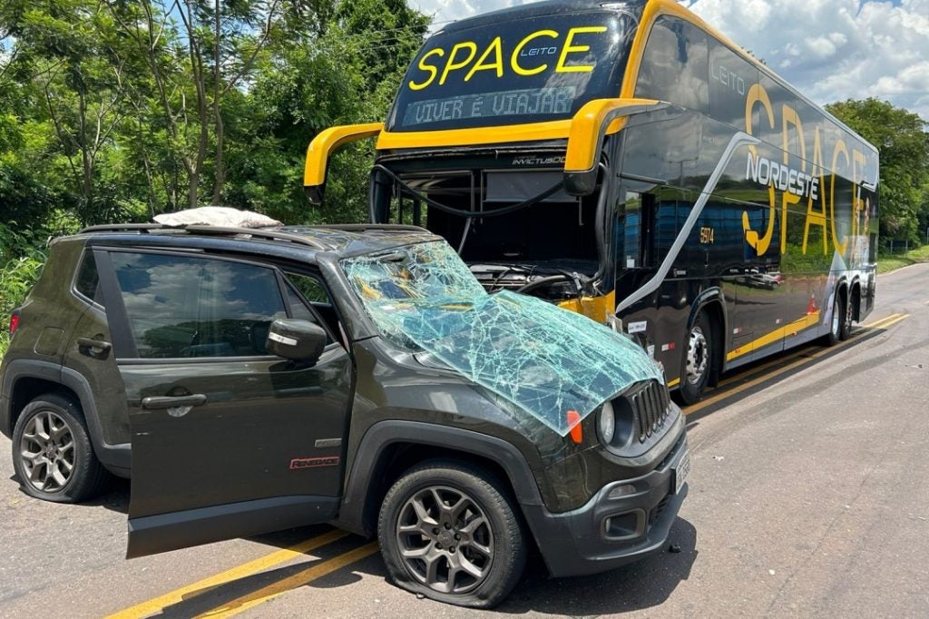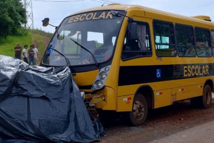 AUTO X ÔNIBUS 10/04/2024 às 16:59 Três pessoas morrem em colisão frontal entre carro e ônibus escolar na PR-473