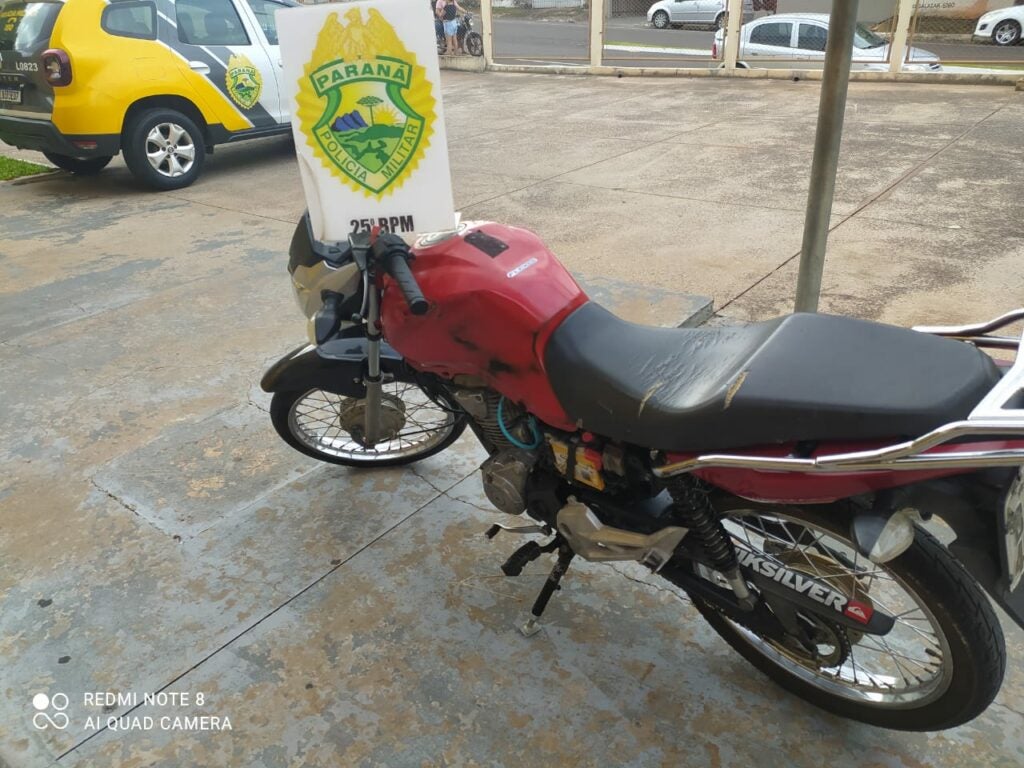 AVENIDA GOIÂNIA 15/02/2023 às 09:28 Motocicleta com alerta de furto é recuperada pela Polícia Militar de Umuarama
