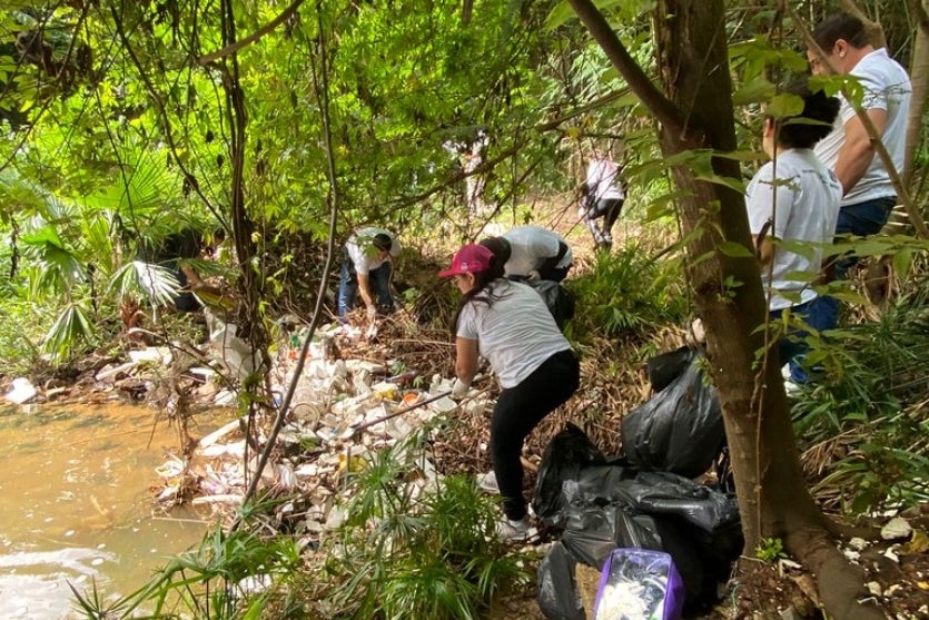 BELA AÇÃO 28/11/2024 às 16:45 Pelo dia do combate à dengue, voluntários retiram 147 sacos de lixo de córrego no Bosque dos Xetá
