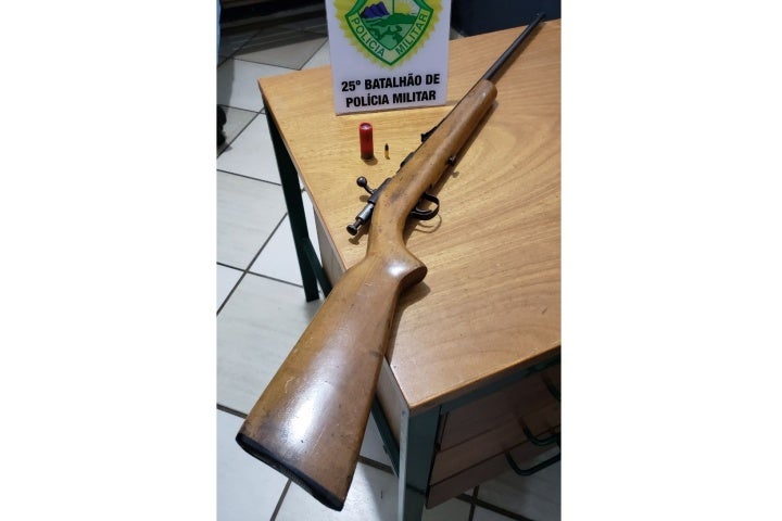 CALIBRE .22 15/05/2023 às 07:07 Homem é preso após atirar com espingarda na frente de casa, em Esperança Nova