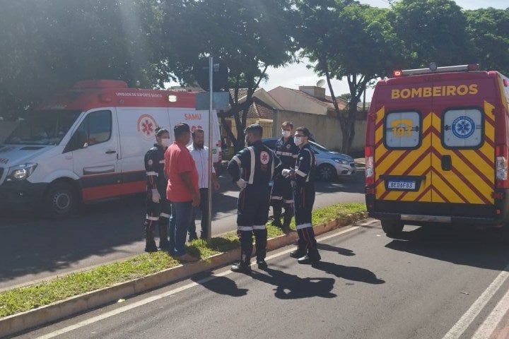 CAMINHONETE X MOTONETA 01/03/2023 às 10:26 Mulher sofre fratura exposta após colidir contra caminhonete em cruzamento de Umuarama