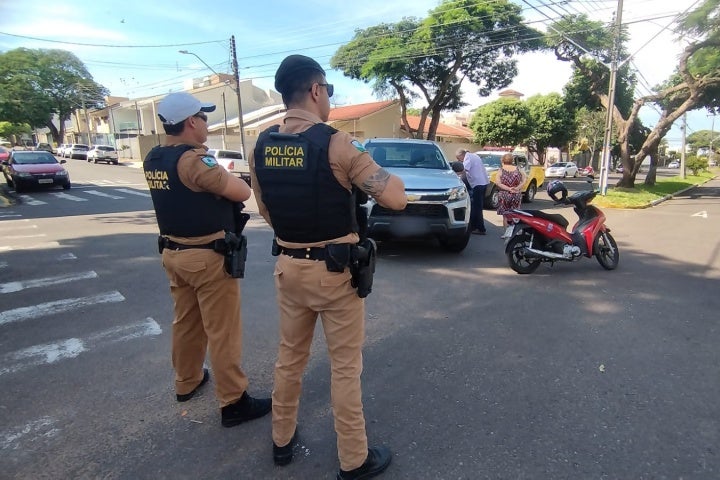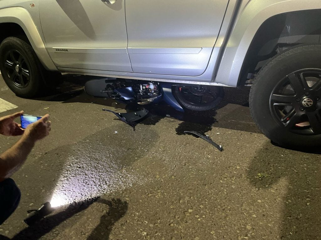 CAMINHONETE X MOTONETA 15/09/2022 às 09:52 Entregadora fica ferida após colisão com caminhonete em cruzamento de Umuarama