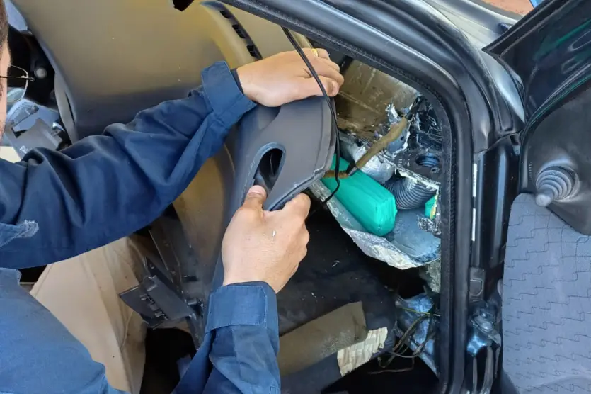 CAMPO MOURÃO 08/02/2025 às 17:34 Maconha e cocaína escondidas em painel de carro são apreendidas pela PRF; homem foi preso