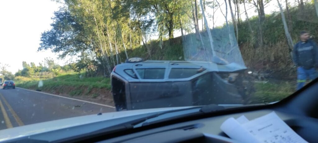 CAPOTAMENTO 14/08/2022 às 14:23 Três pessoas ficam gravemente feridas em acidente no Trevo de Alto Piquiri