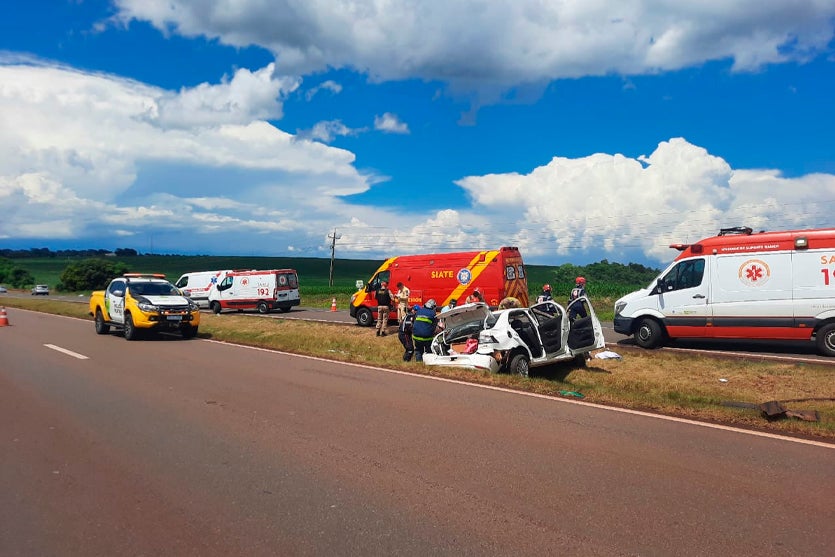 CARRO RECOLHIDO 02/01/2025 às 13:45 Quatro pessoas ficam feridas após condutor perder controle da direção e carro capotar na PR-317