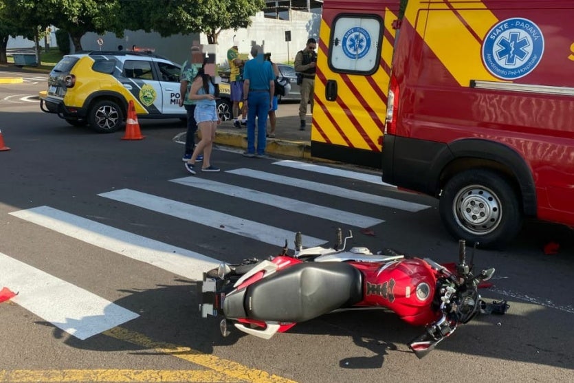 CARRO X MOTO 22/04/2025 às 07:27 Adolescente sem CNH fica ferido após acidente em cruzamento de Umuarama