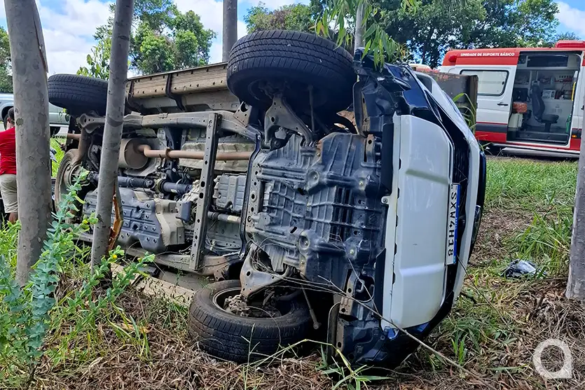 CIANORTE 29/12/2024 às 15:31 Motorista perde controle da direção, picape bate em barranco e tomba na PR-567
