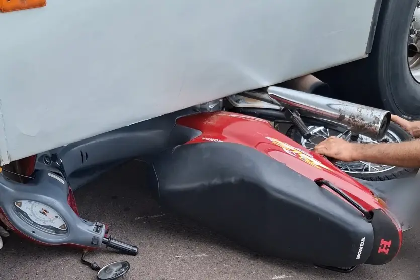 CIANORTE 29/01/2025 às 09:41 Moto para embaixo de ônibus após colisão e condutora é socorrida com ferimentos