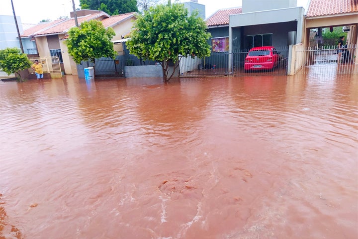 CONDIÇÕES CLIMÁTICAS 14/03/2022 às 14:18 Chuva intensa provoca alagamento de ruas e residências em Cruzeiro do Oeste