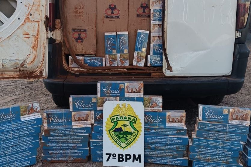 CONTRABANDO 13/08/2025 às 18:45 Perobal: Kombi com carga de cigarros contrabandeados é apreendida na zona rural