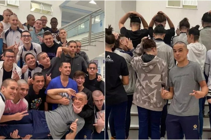 DE AQUECER O CORAÇÃO 02/06/2022 às 11:40 Estudantes raspam a cabeça em atitude solidária ao colega de classe com câncer