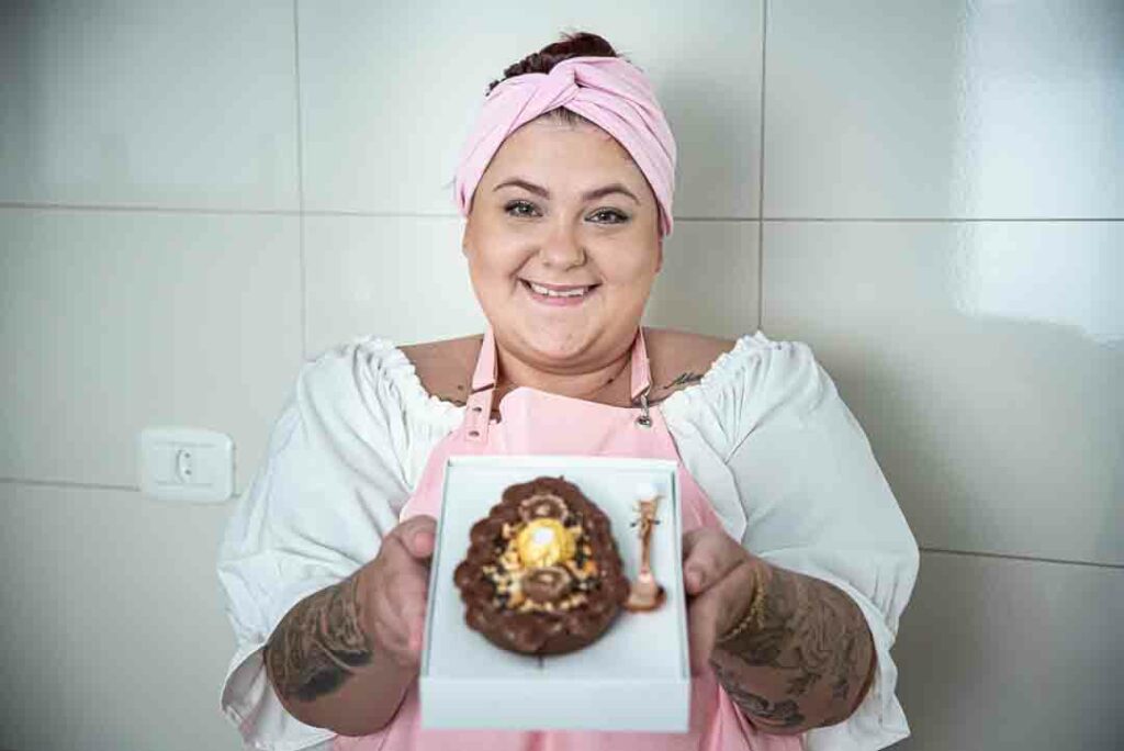 DELÍCIAS DE PÁSCOA 09/04/2022 às 17:17 Ovos de Páscoa gourmet garantem renda extra para confeiteira umuaramense
