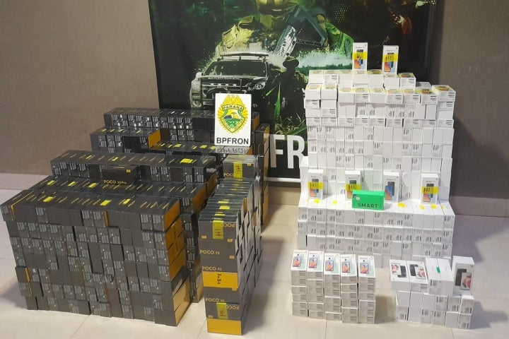 DESCAMINHO 22/10/2023 às 11:50 BPFron apreende carro com 1.175 celulares vindos do Paraguai, em Xambrê