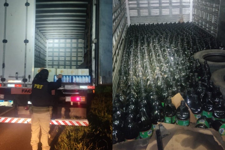 DESCAMINHO 02/02/2024 às 14:43 PRF apreende 2 mil litros de azeite e 364 garrafas de vinho em caminhão na BR-158