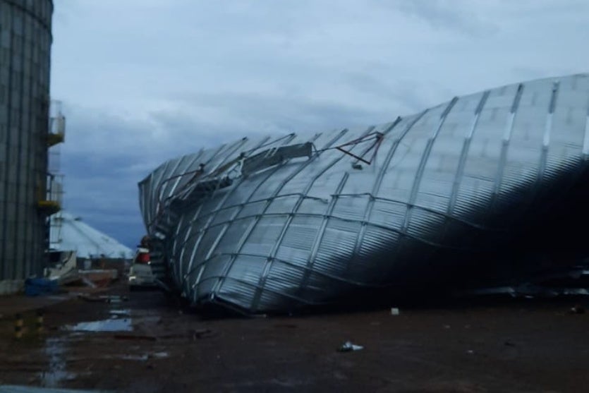 Silo da C. Vale cai em Francisco Alves após chuvas e ventos fortes
