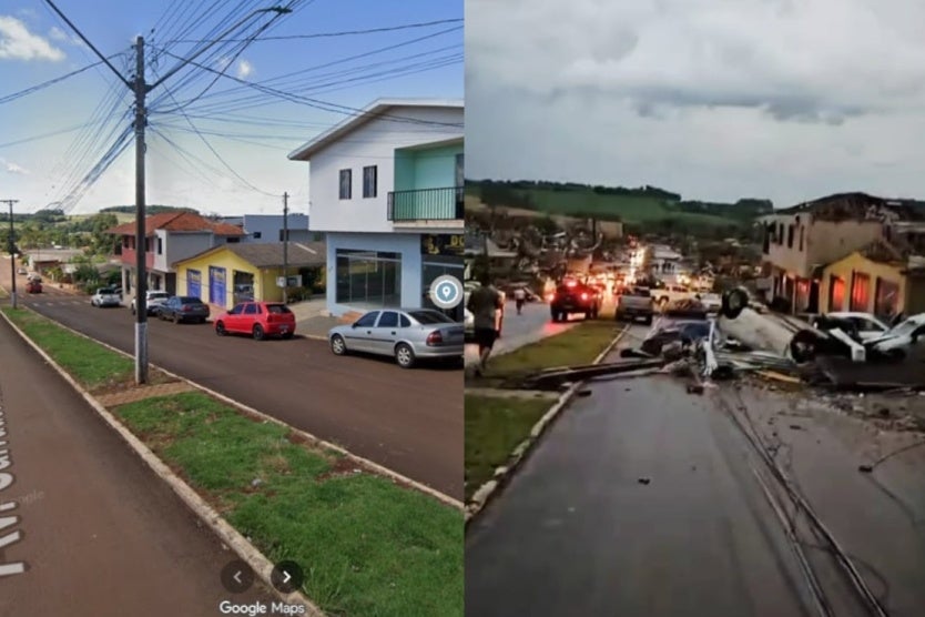 Imagens mostram o antes e o depois do tornado que devastou Rio Bonito
