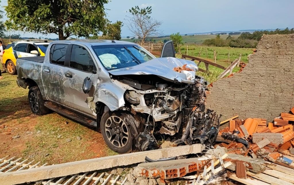 DEU RUIM 17/08/2022 às 16:11 Condutor foge da polícia pela PR-323 com Hilux furtada e colide em muro no distrito de Cedro