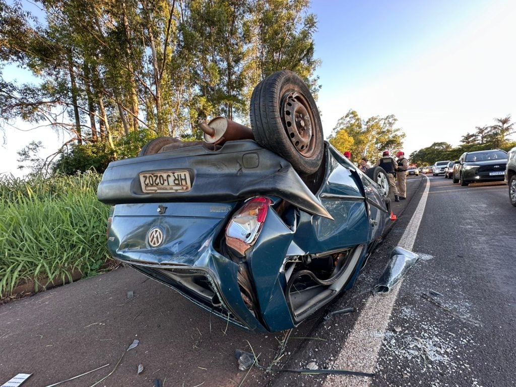 DIVISA COM PEROBAL 05/01/2025 às 19:35 (Vídeo) Casal fica ferido ao capotar veículo na PR-323, a caminho da igreja em Umuarama