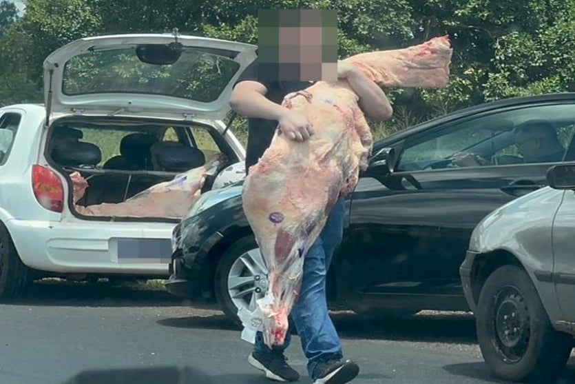 É CRIME 17/01/2025 às 22:22 Empresário investigado por saque de carga devolve 43 quilos de carne furtada à polícia