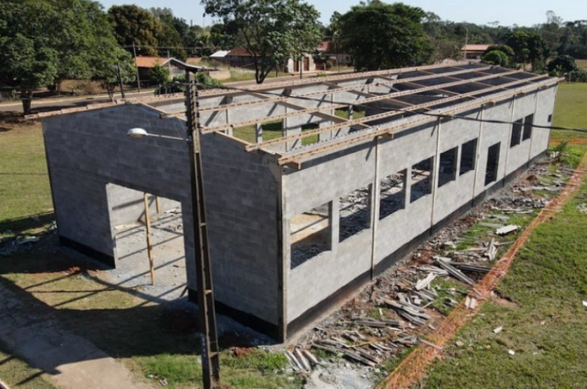 EM OBRAS 19/07/2024 às 17:21 Em reforma, salão comunitário do distrito de Roberto Silveira já tem paredes fechadas