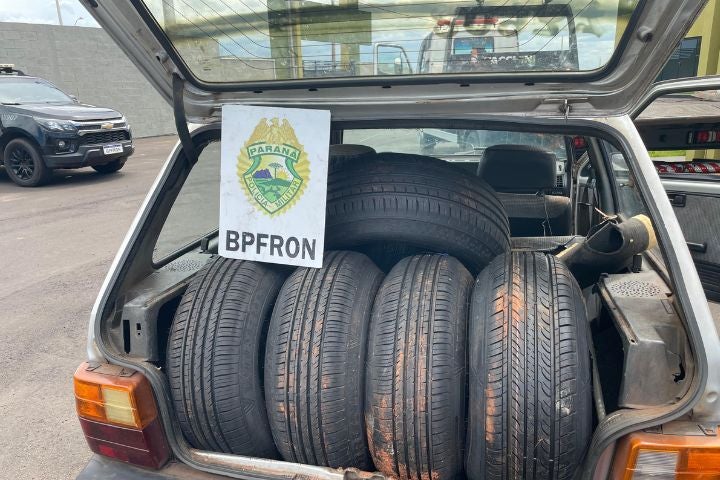 ESTACIONADOS 25/01/2025 às 21:15 BPFron apreende veículos carregados com pneus contrabandeados na PR-323, em Perobal