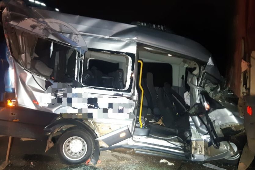 ESTRADAS 16/11/2025 às 11:26 Van é prensada entre dois caminhões durante obras e três pessoas ficam gravemente feridas