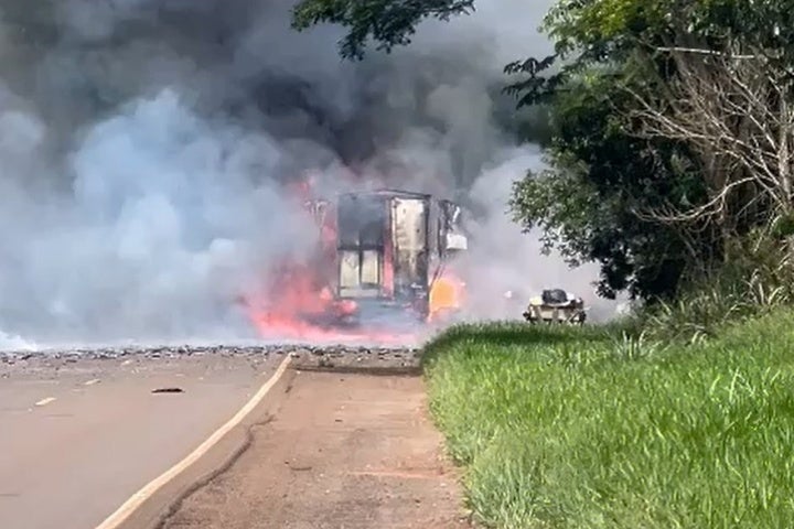 EXPLOSÕES 07/12/2023 às 13:45 Caminhão com fogos de artifício pega fogo nesta manhã na BR-272, em Goioerê