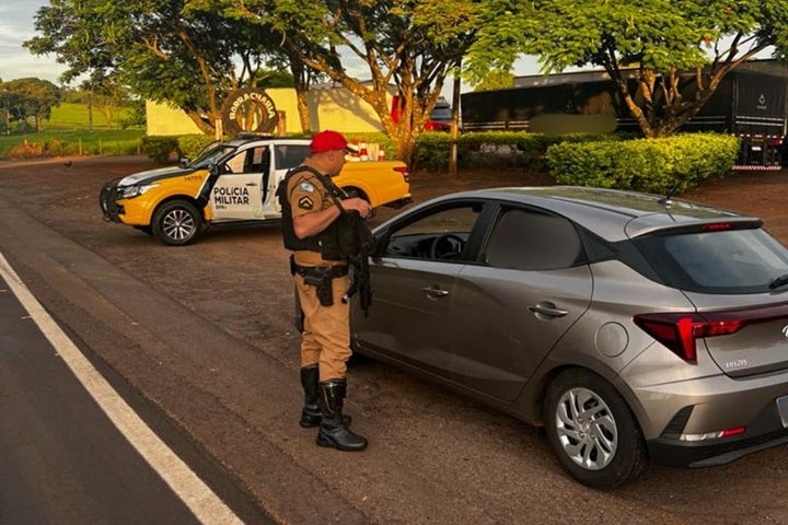 FISCALIZAÇÃO 08/03/2024 às 17:00 PRE recupera veículo roubado e apreende 20 caixas de cigarros na PR-323, em Perobal