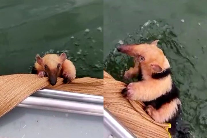 FOFURA! 15/03/2022 às 16:01 Tamanduá que estava se afogando no Rio Paraná é resgatado por casal de pescadores