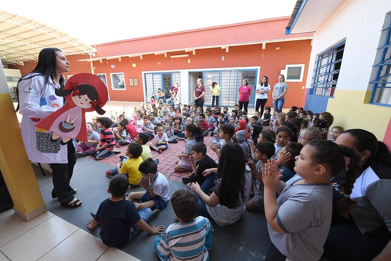FORA DENGUE 27/07/2022 às 17:34 Apresentação com a Chapeuzinho Vermelho ajuda a mobilizar as crianças contra a dengue