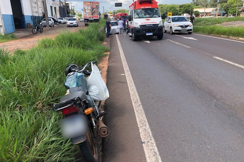 FRATURA EXPOSTA 02/04/2025 às 15:57 Umuarama: Motociclista é socorrido em estado grave após queda perto do viaduto da PR-323