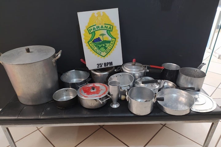 FURTO QUALIFICADO 10/12/2021 às 19:05 Homem é flagrado saindo de casa no Parque Danielle com várias panelas furtadas