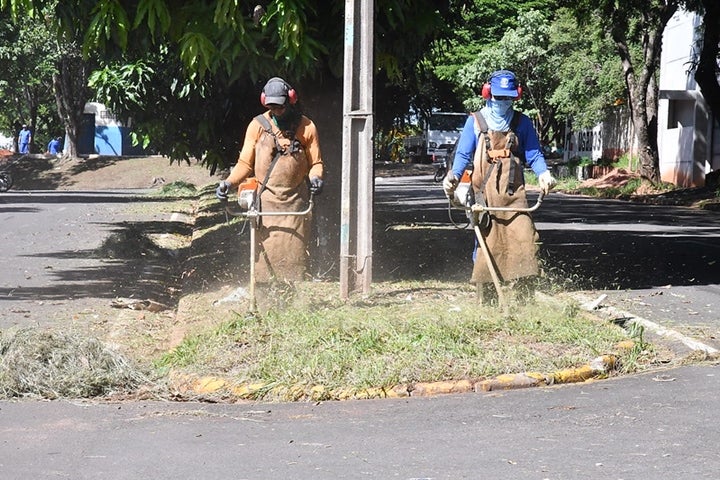GRAMA ALTA 22/03/2022 às 14:10 Força-tarefa da Prefeitura acelera roçada em mato de canteiros e logradouros públicos