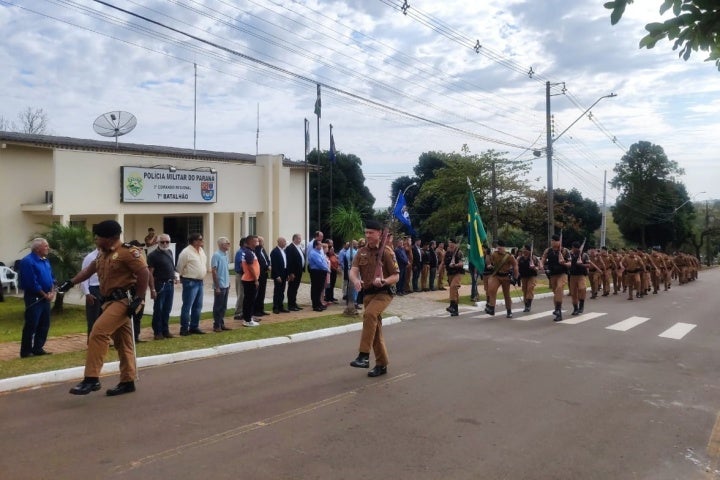 HOMENAGEM 10/08/2023 às 13:50 7º Batalhão celebra os 169 anos da PMPR com solenidade em Cruzeiro do Oeste