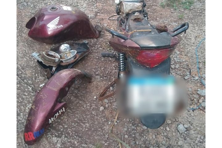 HONDA CG 150 15/07/2023 às 10:55 Moto furtada é encontrada desmontada às margens da PR-180, em Goioerê