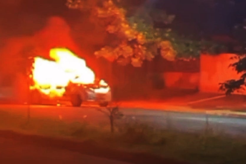 Carro pega fogo e assusta moradores ao sair desgovernado por avenida de Pérola; assista