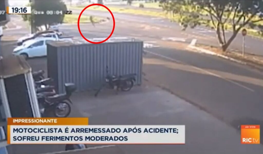 IMPRESSIONANTE 12/09/2022 às 13:20 Vídeo: Motociclista ‘voa’ após bater com violência na traseira de automóvel
