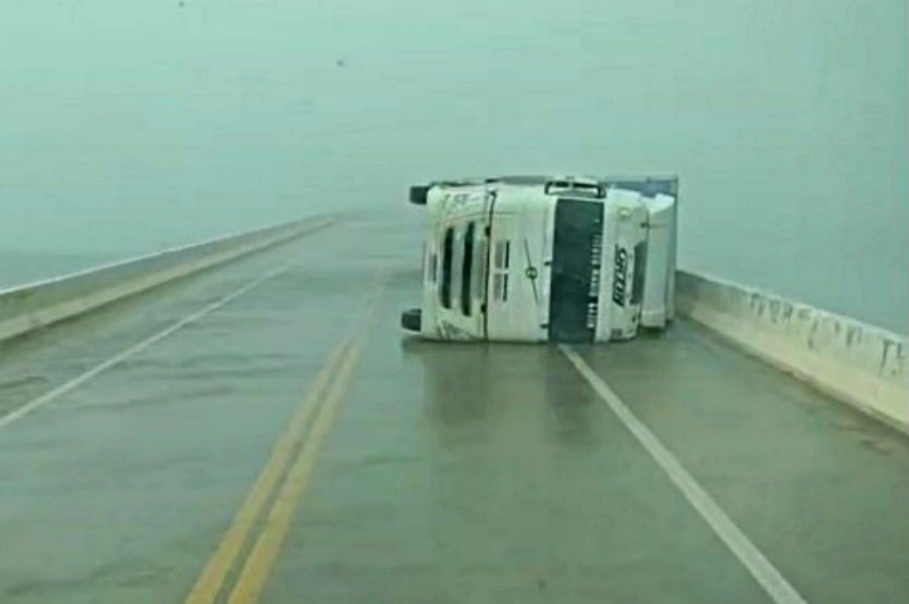 INACREDITÁVEL 07/06/2025 às 20:47 Vento forte tomba bitrem que trafegava pela ponte do Porto Camargo neste sábado