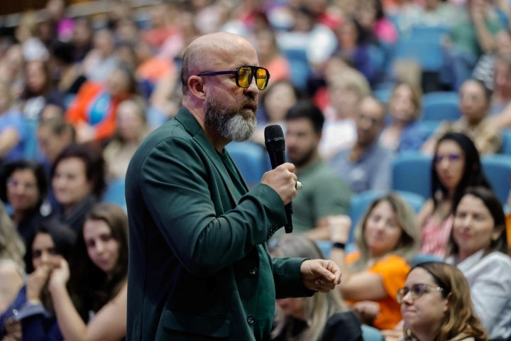 inteligência refinada 15/06/2024 às 14:29 Escritor Fabrício Carpinejar apresenta palestra para profissionais de educação de Umuarama