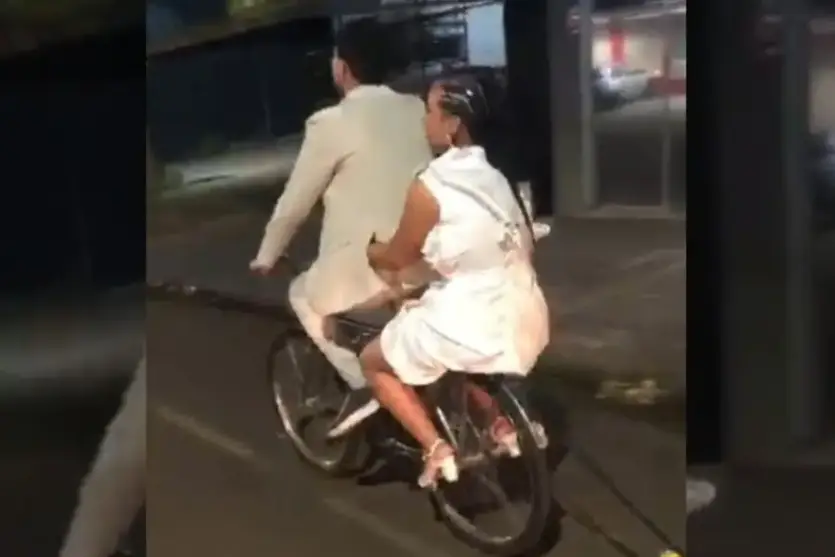 INUSITADO 20/10/2025 às 15:56 Casal de Sarandi deixa casamento de bicicleta e viraliza nas redes sociais