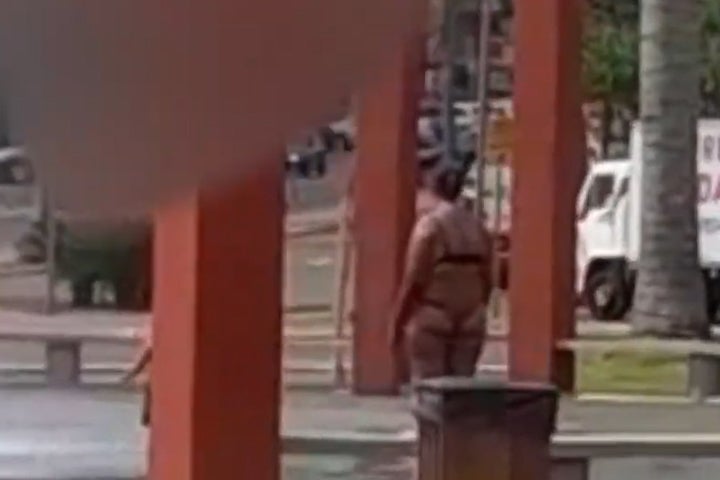 INUSITADO 27/01/2022 às 14:05 Mulher de roupas íntimas toma banho em chafariz no centro de Assis Chateaubriand