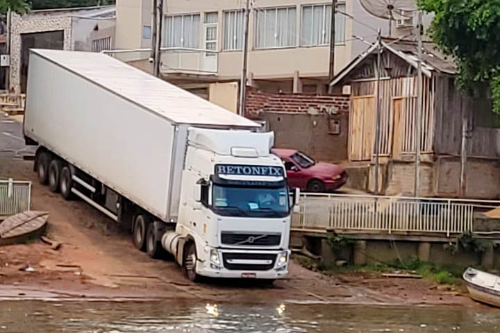 INUSITADO 18/12/2023 às 16:56 Carreta para na rampa do Porto Figueira e precisa de auxílio para ser removida