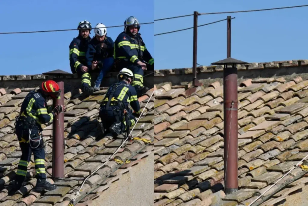 ITÁLIA 02/05/2025 às 10:58 Chaminé é colocada sobre a Capela Sistina em preparação para o conclave no Vaticano