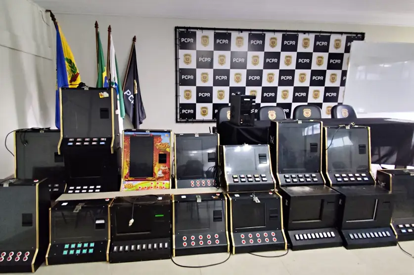 JOGOS DE AZAR 19/02/2025 às 18:12 Quinze máquinas caça-níqueis são apreendidas em Umuarama durante operação da Polícia Civil