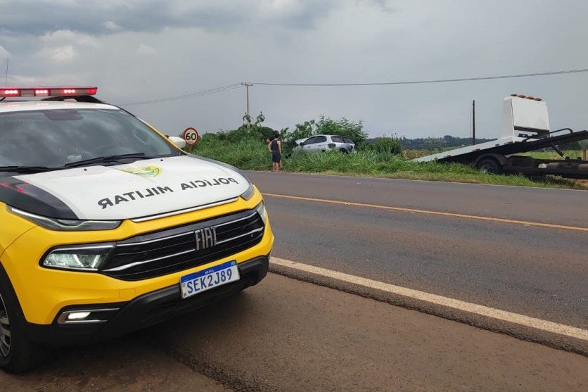 KM 212 02/12/2025 às 07:43 Mulher bate em placa de sinalização na PR-323 e sofre ferimentos após cair em barranco