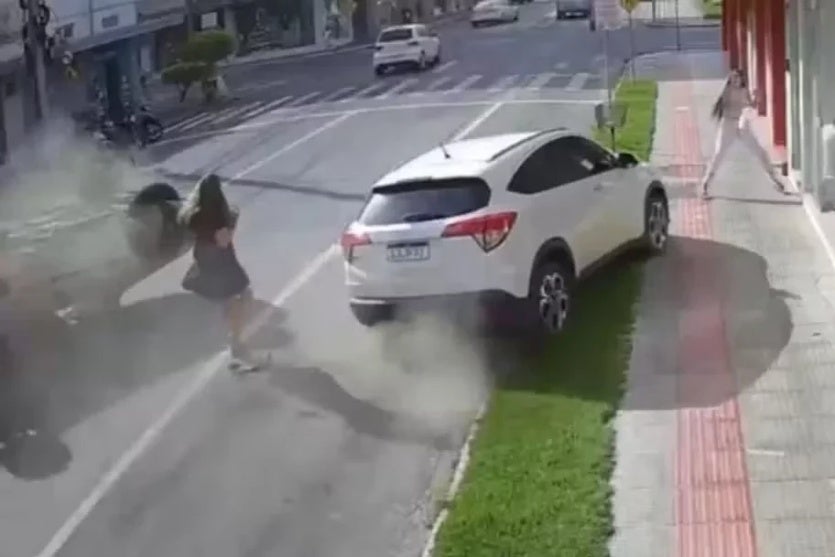 LIVRAMENTO 24/02/2025 às 12:57 Mulher escapa por pouco de ser atingida por carro; acidente foi registrado em vídeo