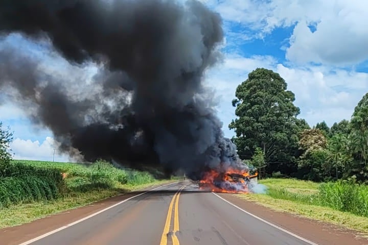 MAMBORÊ 05/03/2024 às 14:40 Duas pessoas morrem carbonizadas após colisão entre carro e carreta na BR-369
